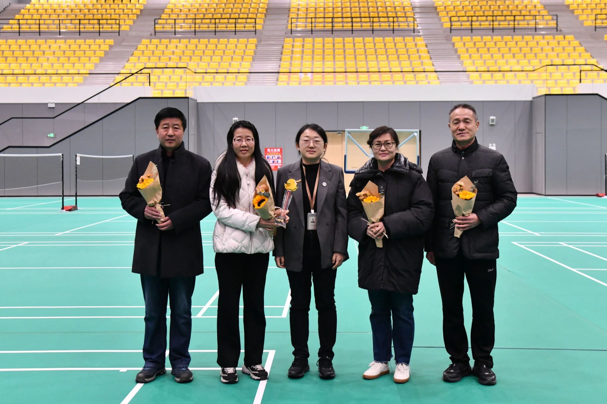 校工会主席李忆秋、副主席陈广园共同为优秀运动员颁发鲜花