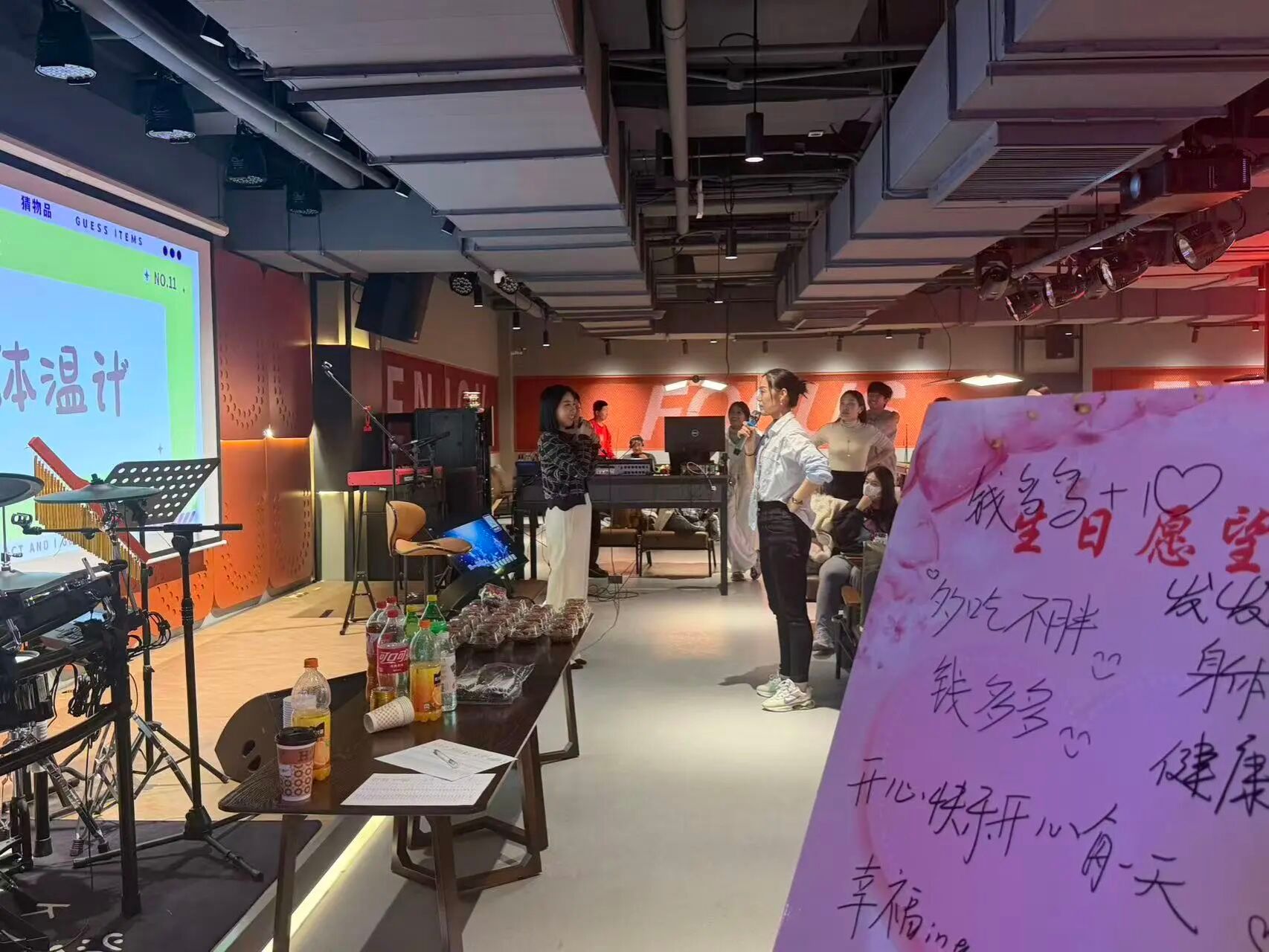 在艺术与传媒学院分工会委员石艺璠主持下,全体在场教师共同唱响生日歌,歌声中饱含同事间的深情厚谊。在温馨的烛光与欢声笑语中,活动进入到“表情包猜成语”“听歌识曲”“你演我猜”等互动游戏环节。老师们踊跃参与,默契配合,现场笑声掌声不断,展现出讲台之外的风采与活力。游戏结束后,封薇老师献唱歌曲,将现场气氛推向高潮。