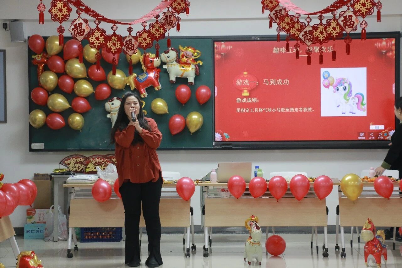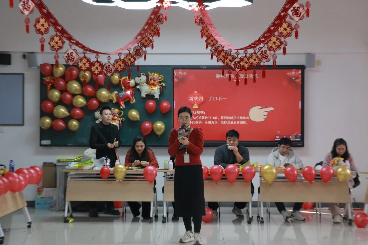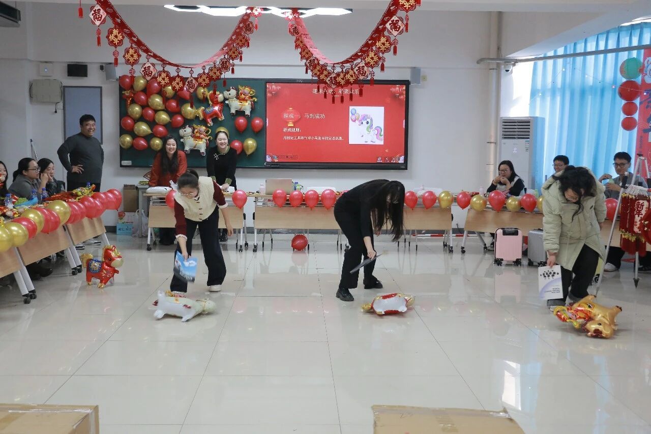 趣味游戏环节精心设计“马到成功”“蒙眼追击”“水瓶大作战”“手口不一”四项游戏,师们踊跃参与,各显身手,赶气球小马时的默契配合、蒙眼追击时的小心翼翼、水瓶挑战中的专注投入、手口不一时的爆笑失误,现场掌声、笑声、欢呼声此起彼伏,大家在轻松愉悦的游戏中放松了身心,增进了彼此的了解与情谊,充分展现了学院教师队伍积极向上、团结协作的良好风貌。