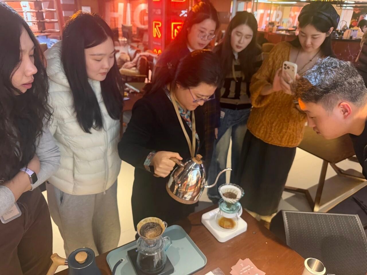 活动邀请了专业咖啡师进行精品咖啡文化讲解、精品咖啡品鉴体验并指导教师进行手冲咖啡体验。在专业讲解下,教职工们系统学习了咖啡的起源、豆种、产地及处理方式等基础知识,建立起对精品咖啡的全面认知。大家还品鉴了来自不同产区、不同处理方式与烘焙程度的咖啡,感受咖啡风味的细微差异,学习如何选择适合自己口味的咖啡豆。