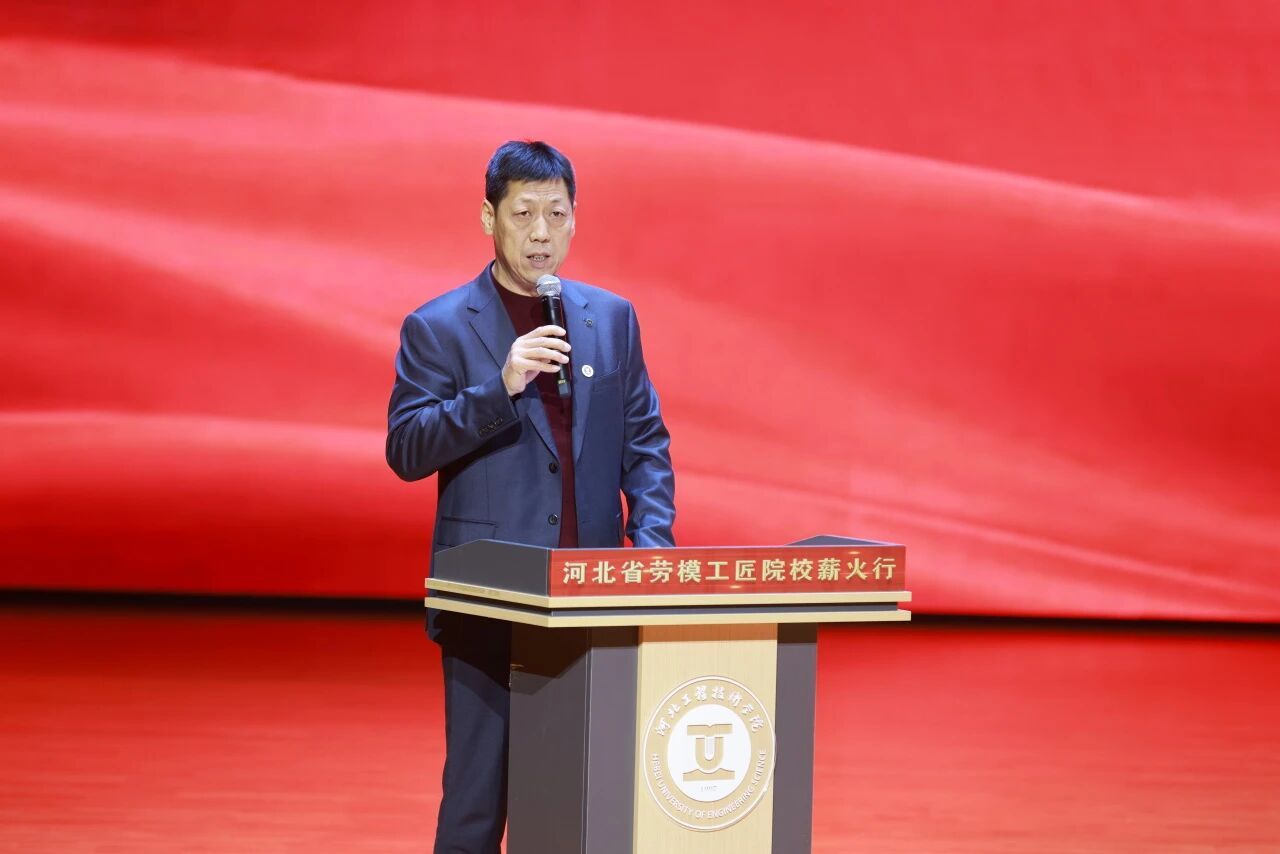 冬阳暖照传薪火,匠心筑梦启新程。11月28日,“毕业后我要成为你”——河北省劳模工匠院校薪火行活动在我校礼堂举行。校本部700余名师生现场参与,灵寿校区200余名学生线上同步收看,共同聆听京津冀大工匠、国家电网公司劳动模范常杰的亲身经历和感人故事,深刻感受到工匠精神的丰富内涵和时代价值,河北省总工会、河北工人报社等领导及我校党委书记常新平出席活动。活动由校工会主席李忆秋主持。