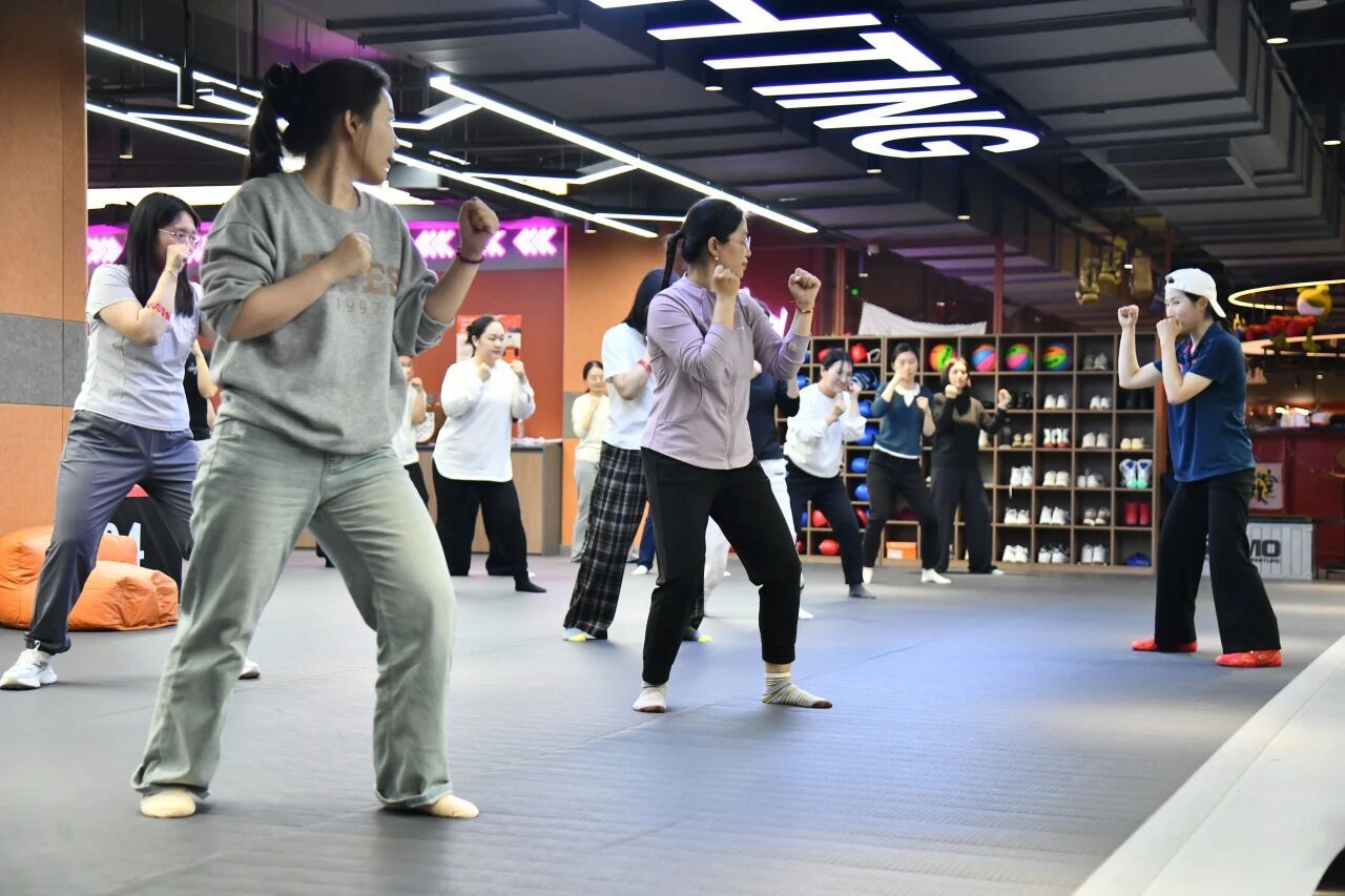 作为校工会持续推进的品牌文体项目,本期拳击课程为期八周,由体育教学部专任老师菅礼爽担任教练,分设基础班与进阶班,满足不同水平教职工的需求。拳击课开设以来,广受教职工欢迎,报名热度持续攀升,第三期首节课程便吸引了来自各分工会的四十余名教职工踊跃参与。